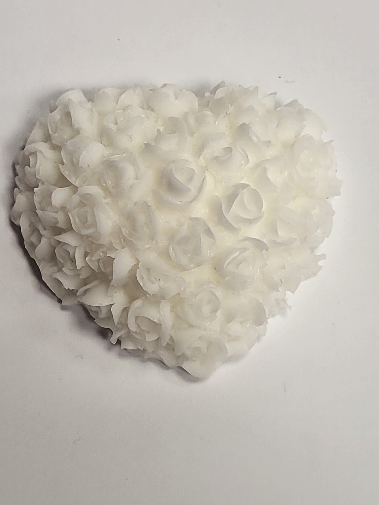 Ručně vyráběné dekorativní mýdlo ve tvaru srdíčka s kytičkami. Barva bílá, vůně květinová. Hmotnost 30 g, rozměr 5,5 × 5,5 cm.