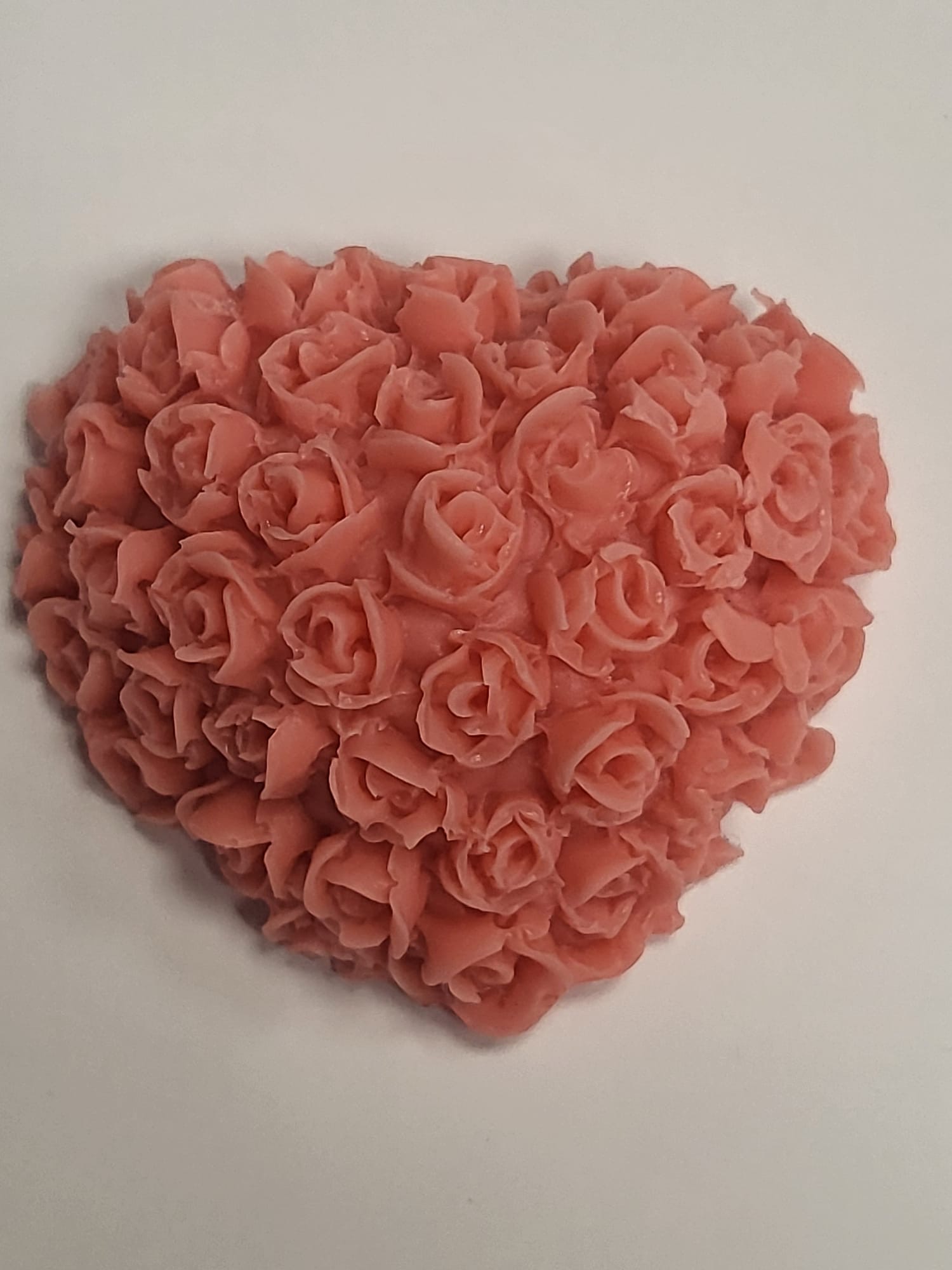 Ručně vyráběné dekorativní mýdlo ve tvaru srdíčka s kytičkami. Barva růžová, vůně květinová. Hmotnost 30 g, rozměr 5,5 × 5,5 cm.