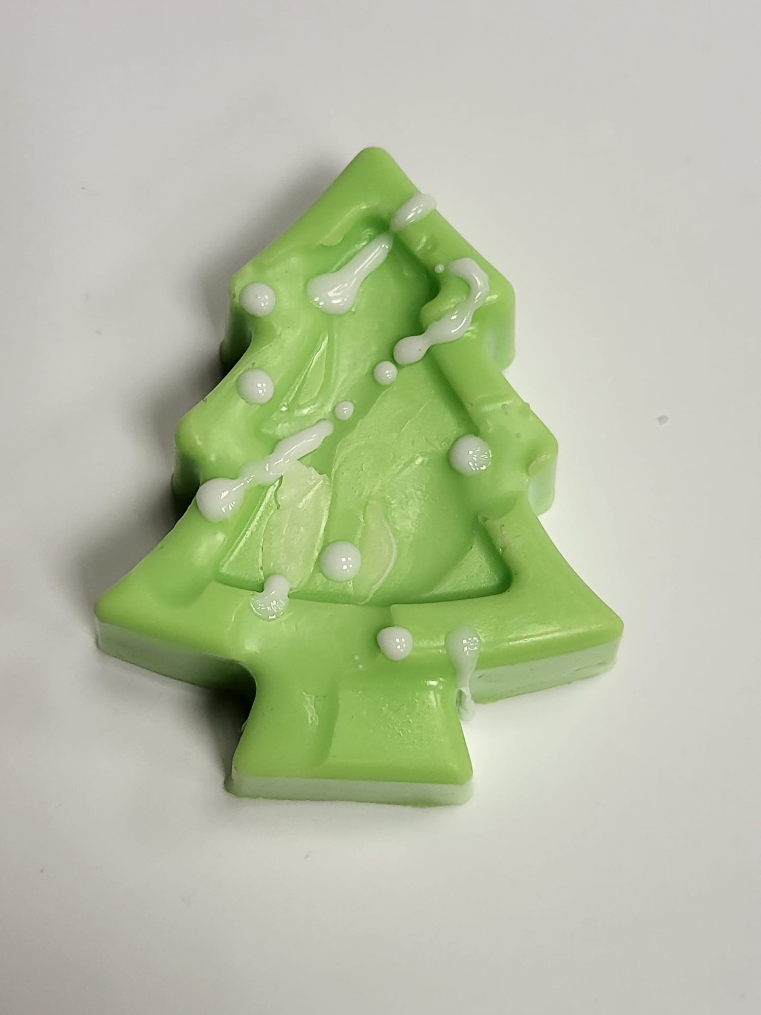 Ručně vyráběné vánoční mýdlo ve tvaru vánočního stromečku. Barva zelená, vůně vánoční. Hmotnost 40 g, rozměr 2 × 8 cm.