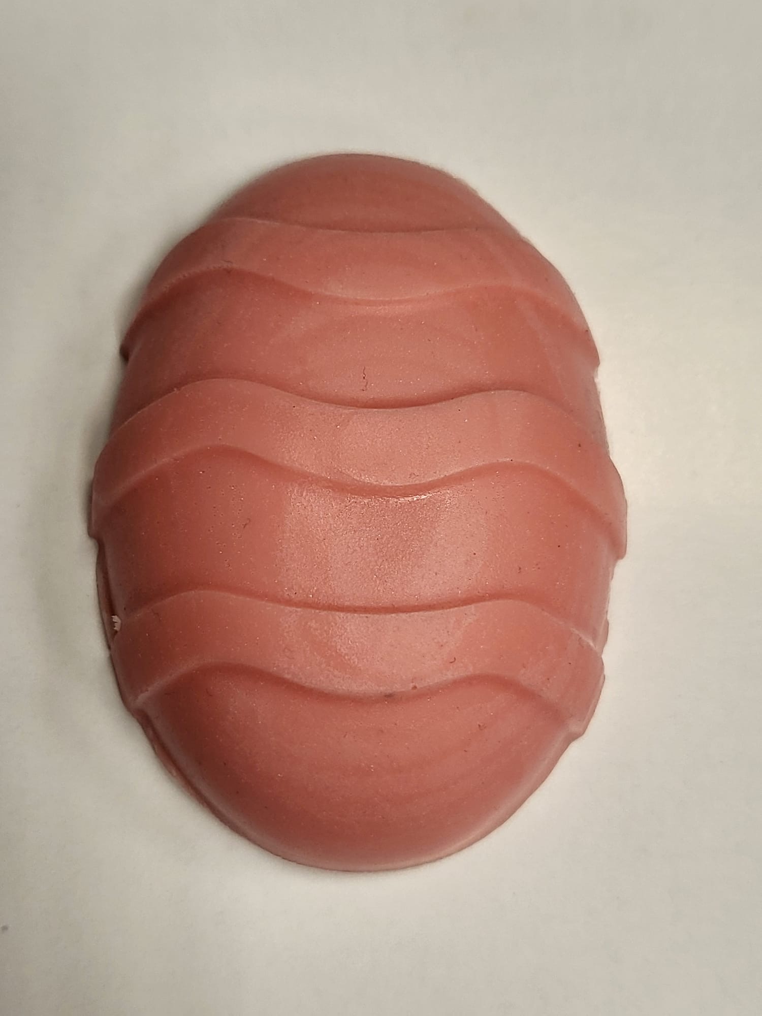 Ručně vyráběné velikonoční mýdlo ve tvaru vajíčka. Barva růžová, vůně květinová. Hmotnost 64 g, rozměr 9 × 3 cm.